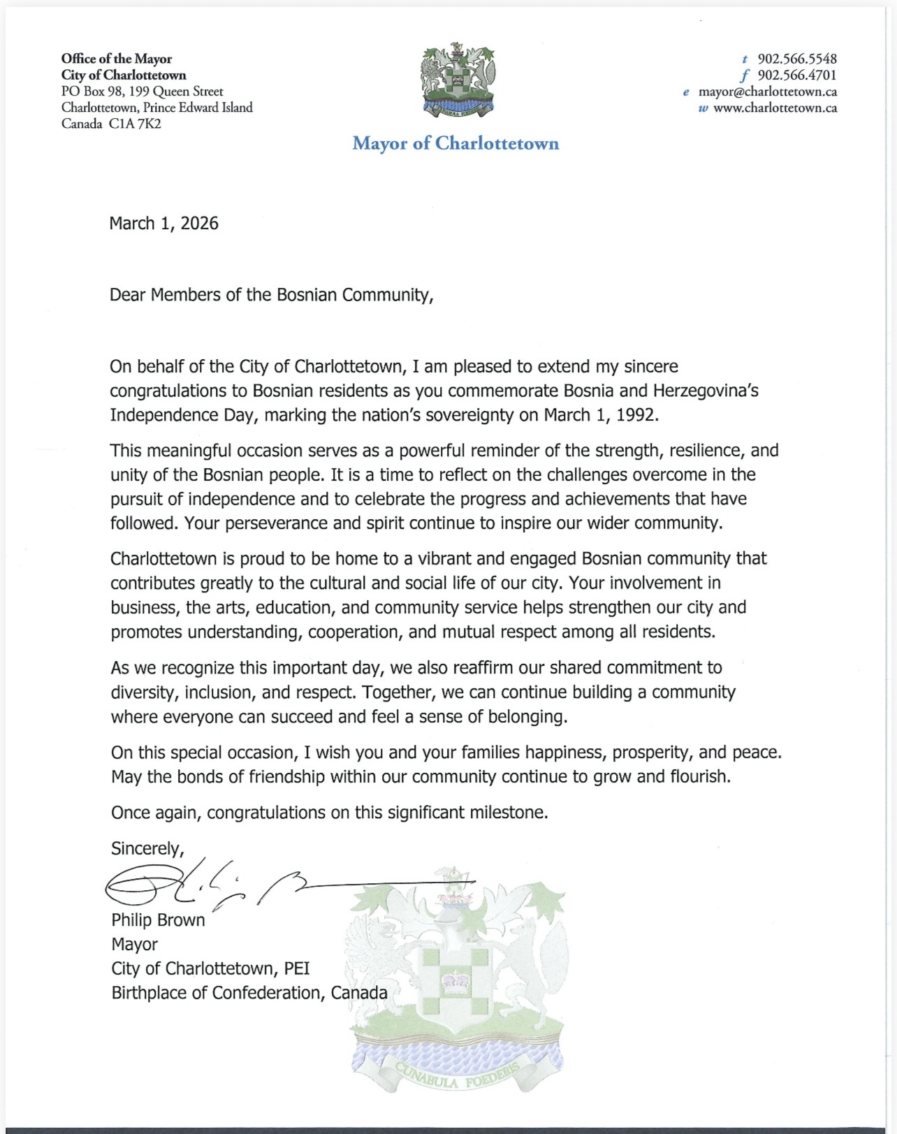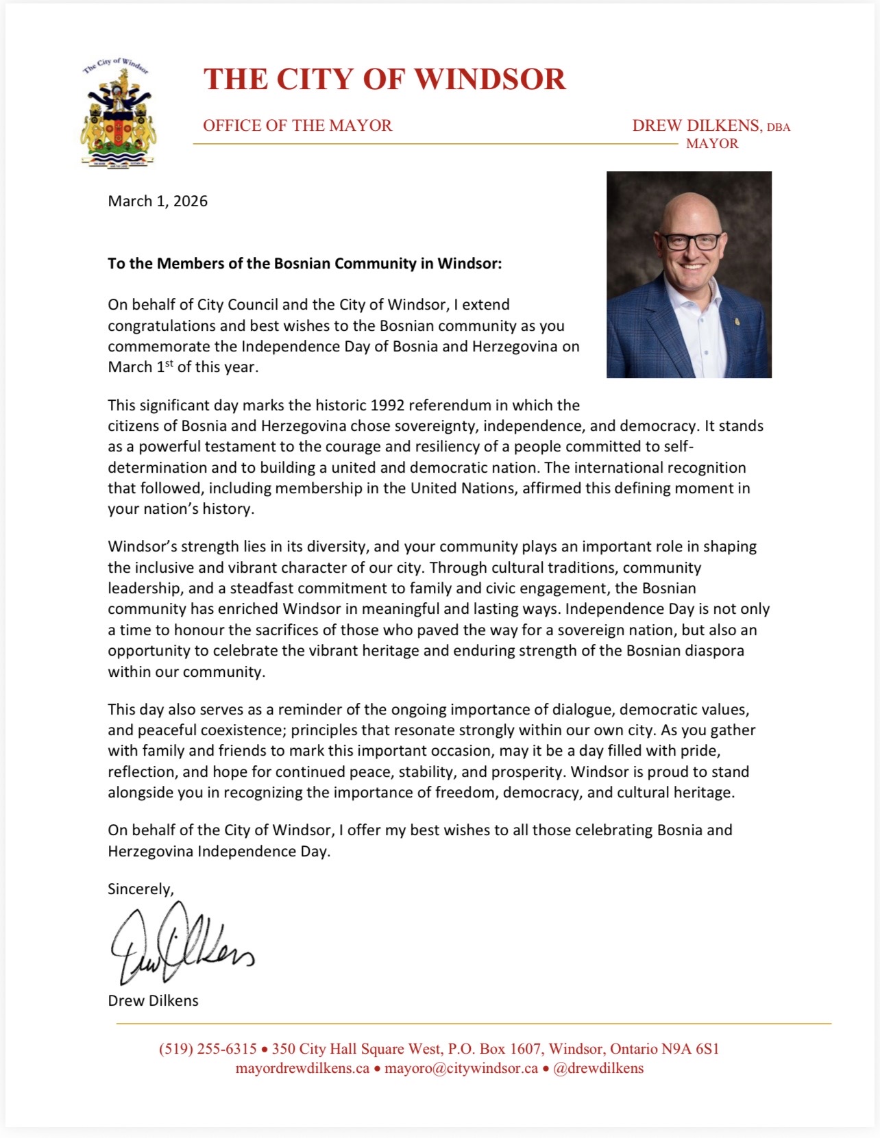 Ove godine povodom Dana nezavisnosti BiH rekordan broj kanadskih političkih lidera, članova Vlade i Parlamenta Kanade, premijeri kanadskih pokrajina i teritorija i gradonačelnici kanadskih gradova su odali počast državi BiH, čestitali joj jedan od največih blagdana, Dan nezavisnosti i odali priznanje bosanskohercegovačkoj dijaspori za njenu kontinuiranu borbu za očuvanje i jačanje bosanskohercegovačkih interesa u Kanadi, njene bogate historije, kulture i tradicije.